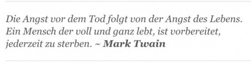 Es ist eine grosse Hilfe für Menschen mit Ängsten, dies sich bewusst zu machen und die Erfahrung, sich des Todes bewusst zu werden, als Weckruf zu nutzen, um auf mannigfaltige Weise persönlichen Wachstum zu fördern.