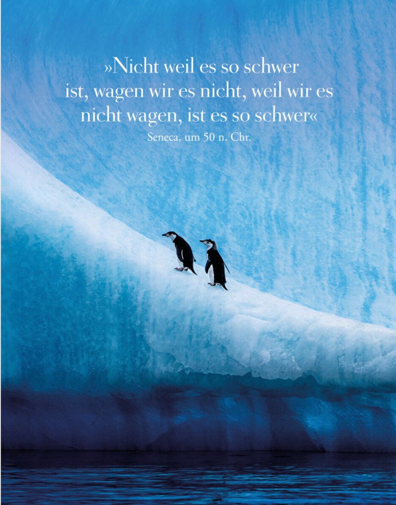 Angst zu haben, ist für sich genommen reine Zeitverschwendung. Aber wie man mit ihr umgeht, ist trotzdem eine gute Frage. Am besten bereitet man sich auf das vor, was kommt. Man kauft Masken und lernt, sich richtig die Hände zu waschen. Genauso wichtig ist es aber, sich psychologisch zu rüsten. Stoiker sind, wenn man so will, emotionale Prepper. Wir versuchen uns bereit zu machen für Herausforderungen, die uns das Leben vor die Füsse wirft. Wir tun deshalb ganz bewusst Dinge, an denen man scheitern kann. Ich meine damit kein katastrophales Scheitern, sondern eines, bei dem man zwar hinfällt, aber auch wieder auf die Beine kommt. Wir tun Dinge, die ungemütlich sind, einfach weil sie ungemütlich sind – eine lange Wanderung oder einen anstrengenden Campingtrip. Wir tun Dinge, die uns schwerfallen, einfach nur, weil sie uns schwerfallen. Denn wer es schafft, durch das Unbehagen hindurch zukommen, wird kompetenter und selbstbewusster.