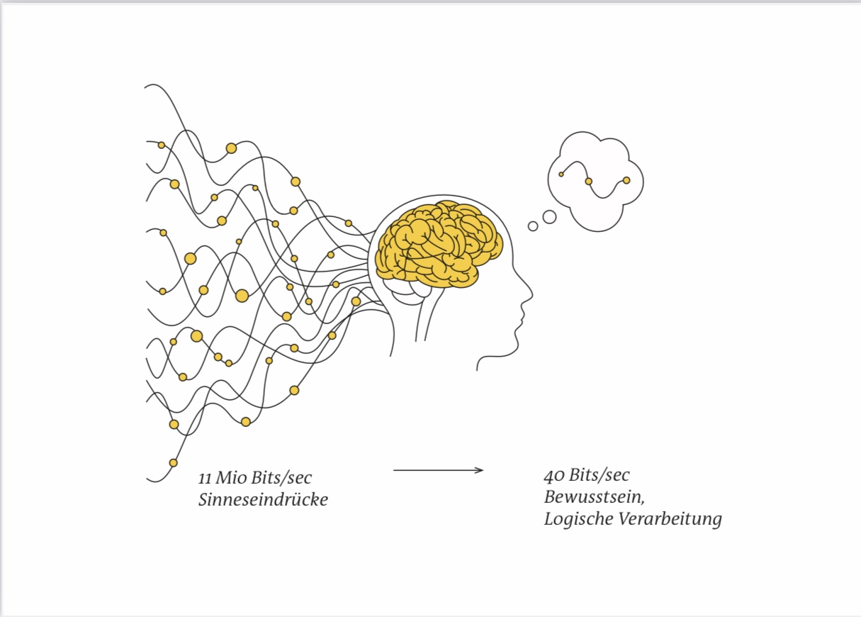 Bescheidenheit ist angebracht in Angesicht unserer mickrigen Hirnleistung! Es leistet gerade mal 40-50 Bit/s. Es besteht aber ein chaotisches Netzwerk von Milliarden Faktoren über die wir keine Kontrolle haben. Allein schon unsere Augen senden pro Sekunde etwa 10 Mio Bit an Information zu unserem Hirn! Mein Computer macht da seinen Download schon im Gigabit-Bereich – und der ist nicht mal so chaotisch…