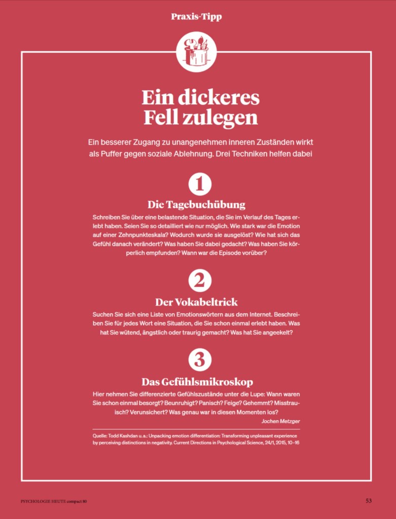 Die Ergebnisse, veröffentlicht im Personality and Social Psychology Bulletin, bestätigten, dass Neubewertung funktioniert: Die Teilnehmer empfanden weniger negative Emotionen als beim freien Zulassen. Auch das Unterdrücken der Gefühlsäusserungen zeigte Wirkung, wenn auch geringer als das positive Umdenken, aber stärker als das freie Ausleben der Gefühle.